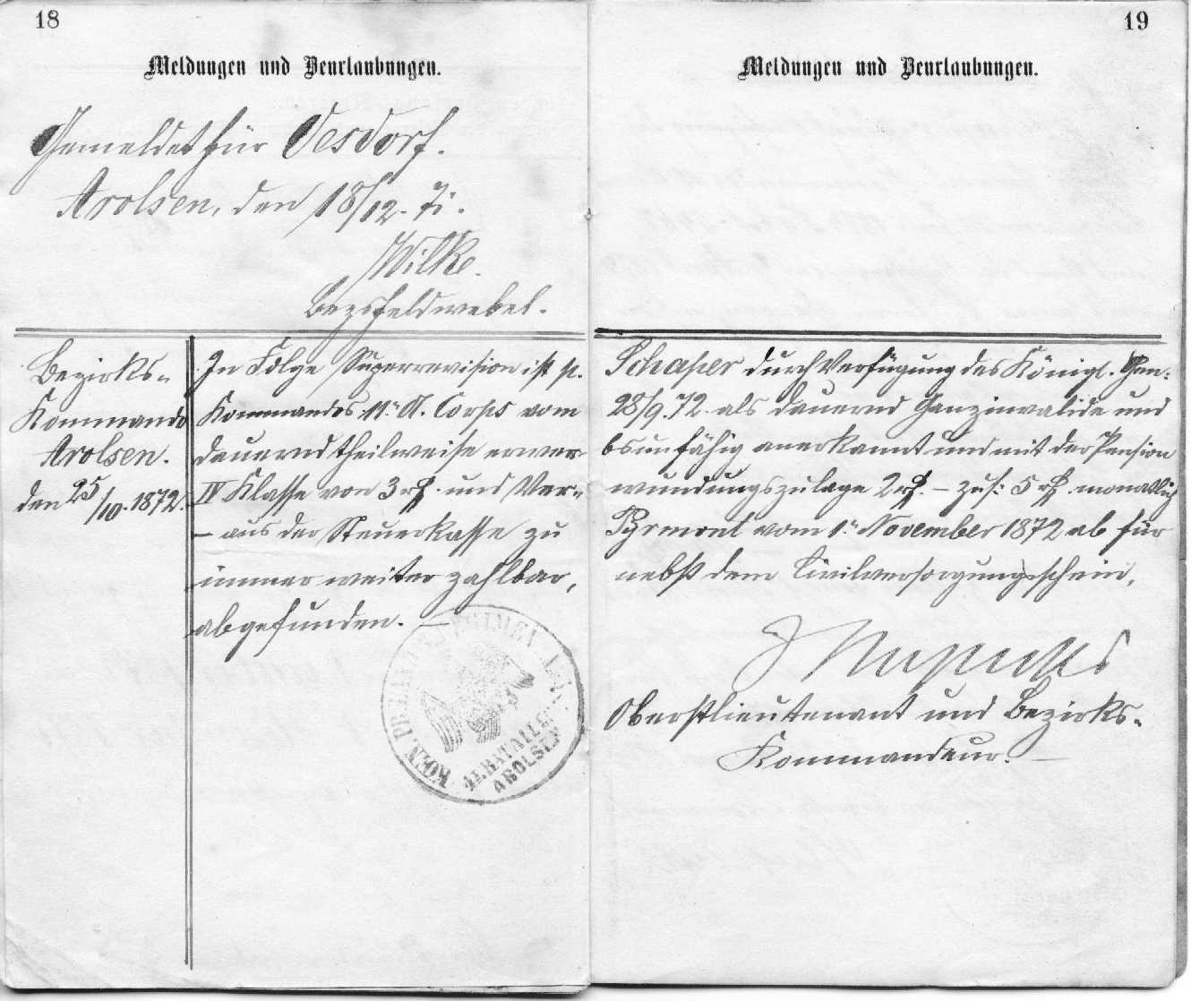 immer weiter zahlbar, nebst dem Civilversorgungsschein,