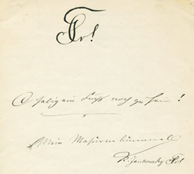 Nun waren wir bald einig. Sie geht und meldet "Der Briefträger ist mit einer Depesche da und will den Herrn Amtsrichter sprechen". Der kommt und fragt nun sehr erregt: "Was gibt's?"; ich stehe in dunklen Hausflur und beginne: "Gestatten Sie, dass ich mich als Fuchs der Franconia vorstelle. Ich reise jetzt durch Masuren und wollte mir das Vergnügen nicht entgehen lassen einen alten Herrn kennen zu lernen. Ich heiße Jankowsky". - "Na, das ist schön".