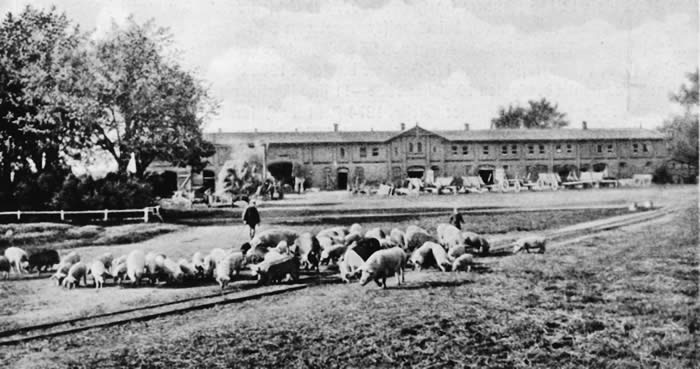 Es waren also 488 ha oder 74% des Ackerlandes mit Früchten bebaut, während vor Einführung der intensiven Wirtschaft nur 364 ha oder 58 % des Ackerlandes bebaut waren. Infolge des gewaltigen Futteranbaues, welchen diese Wirtschaftsveränderung zur Folge hatte, mußte eine Vermehrung des Viehbestandes vorgenommen werden. Früher waren 90 Haupt Rindvieh, 1000 Stück Schafe, 30 Pferde und keine Schweine vorhanden, jetzt werden 200 Haupt Rindvieh, 1000 Schafe, 48 Pferde und 250 Stück Schweine gehalten.